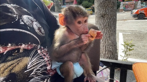 Обезьянка Люся утро начинает с кофе!