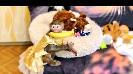 Обезьянка Люся так обрадовалась ЗОЛОТОМУ платью от Лешика, что чуть не РАЗГРОМИЛА весь дом!