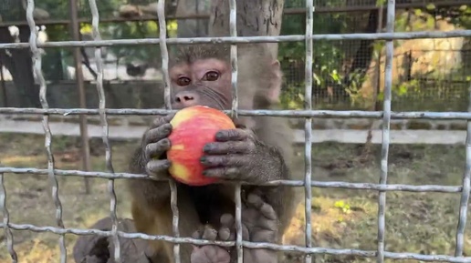 Обезьянка Люся поделилась яблоком с носухой!