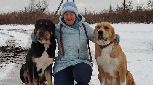 Зимняя прогулка с двумя алабаями