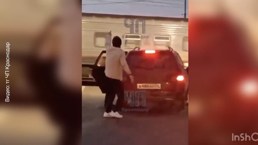Два бородача устроили обезьяньи танцы на переезде в Краснодарском крае, выехав на встречку!