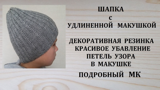 Шапка с удлиненной макушкой Красивое убавление петель узора в макушке Подробный МК