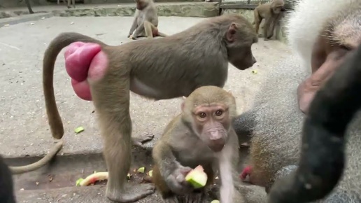 У гамадрила Нафани и его семейства арбузный сезон в самом разгаре!