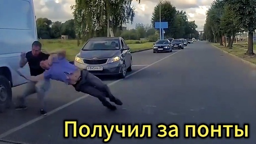 Самоуверенный фраерок поверил в себя и вышел на разговор, но удалось лишь отхватить по соплям. Разборки на дороге, снятые на камеру