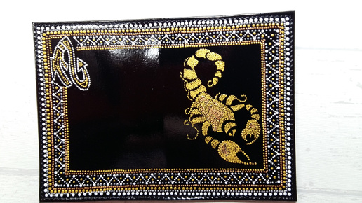 Скорпион. Обложка на паспорт. Точечная роспись. Кожа.