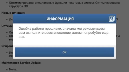 ОШИБКА РАБОТЫ ПРОШИВКИ, СНАЧАЛА МЫ РЕКОМЕНДУЕМ ВАМ ВЫПОЛНИТЬ ВОССТАНОВЛЕНИЕ, ЗАТЕМ ПОПРОБУЙТЕ ЕЩЁ РАЗ