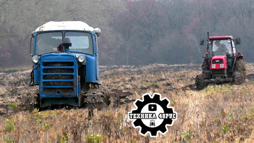 Осенняя пахота и необычный дуэт. Тракторы ДТ-75 и ЛТЗ-60 пашут вместе