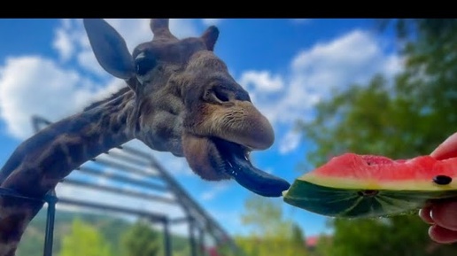 Чтоб угостить жирафа арбузом пришлось постоять в очереди!