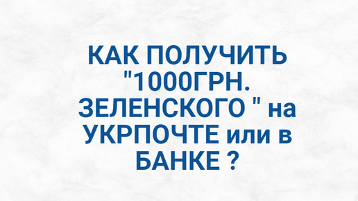 КАК ПОЛУЧИТЬ 1000 грн ЗЕЛЕНСКОГО через УКРПОЧТУ или БАНК?