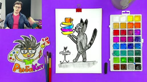 Смешная КОШКА - Официант / рисуем и раскрашиваем