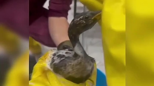 Жители Краснодарского края отмывают птиц от нефтепродуктов после крушения танкеров