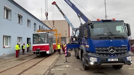 Погрузка трамвая Татра T6A5 на трал для отправки в другое место работы