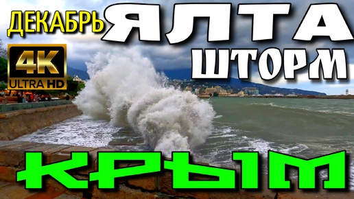 ШТОРМИТ В ЯЛТЕ. ПРИГОТОВЛЕНИЯ К НОВОМУ ГОДУ. НАБЕРЕЖНАЯ. ПЛЯЖ. 4K. #крым #ялта #4k