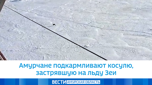 Амурчане подкармливают косулю, застрявшую на льду Зеи