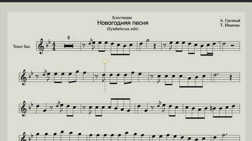 Новогодняя песня - группа Блестящие - Ноты для саксофона тенор - минусов с сайта sax1 - Простые мелодии для начинающих саксофонистов