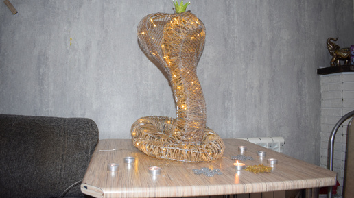 Новогодний светящийся символ 2025 года- змея! из алюминиевой проволоки своими руками. уличный декор