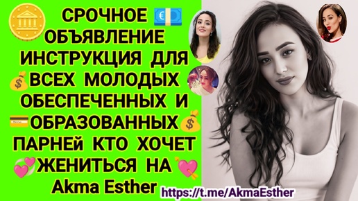 СРОЧНОЕ ОБЪЯВЛЕНИЕ ИНСТРУКЦИЯ ДЛЯ ВСЕХ МОЛОДЫХ ОБЕСПЕЧЕННЫХ И ОБРАЗОВАННЫХ МОЛОДЫХ ПАРНЕЙ КТО ХОЧЕТ ЖЕНИТЬСЯ НА Аkma Esther