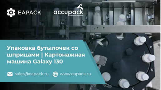 Упаковка бутылочек со шприцами | Картонажная машина Galaxy 130 | Accupack