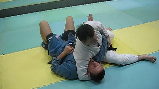 2016 год. Уход с удержания сбоку захватом за отворот сзади с помощью ноги.