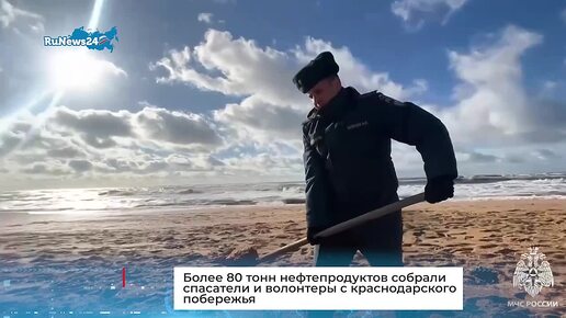 Более 80 тонн нефтепродуктов собрали спасатели и волонтеры с краснодарского побережья