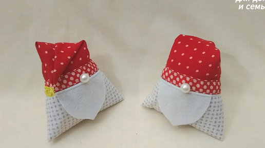 Волшебный Новогодний ГНОМ из ткани за 10 минут из двух треугольников своими руками