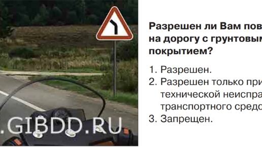 Билет № 1. Вопрос № 2. Разрешен ли Вам поворот на дорогу с грунтовым покрытием?