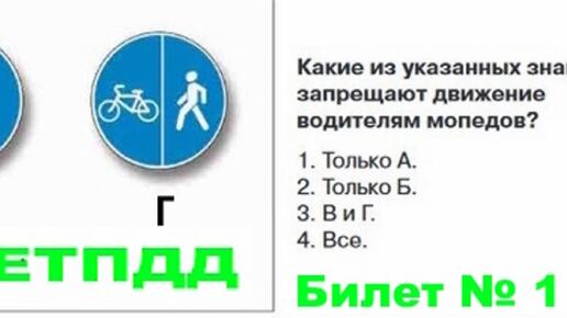 Билет № 1. Вопрос № 4. Какие из указанных знаков запрещают движение водителям мопедов?