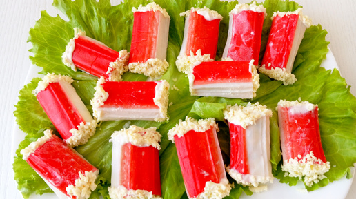 Рулетики 🫔 из крабовых 🦀 палочек с начинкой / Вкусная, яркая, аппетитная и праздничная 🎊🎉🌲 закуска