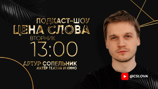 Завтра в 13:00! В Подкаст - Шоу "Цена Слова" , Артур Сопельник — актёр театра и кино