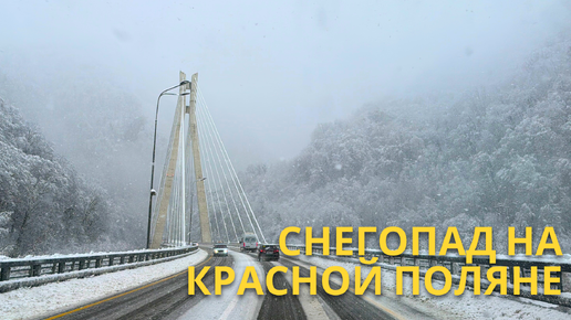 Дорога на Красную поляну, граница климатических зон, Роза Хутор в снегопад 17 декабря