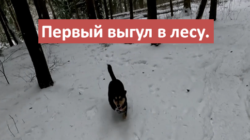 Пробую выгуливать щенка по лесу.