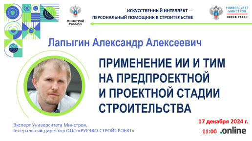 ВИДИО. Применение искусственного интеллекта и технологий информационного моделирования на предпроектной и проектной стадии строительства