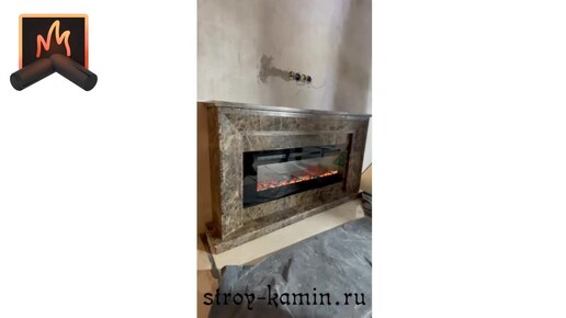 Большой электрический камин Dimplex в мраморном портале по авторскому проекту и установкой под ключ