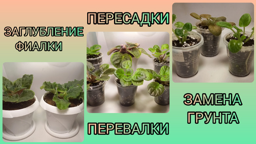 Заглубление фиалок. Пересадки, перевалки. Замена грунта у деток. Редкий случай.