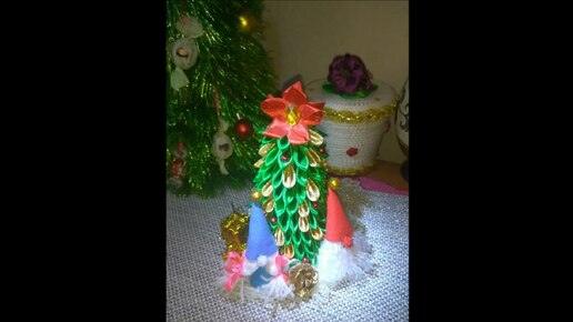 Фотографии брошек из бисера, вязанных крючком игрушек, елочек из ленточек - работы моей дочери