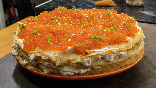 Новогодний торт из красной рыбы и икры
