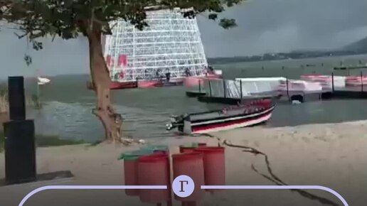 В Бразилии во время шторма рухнула 56-метровая плавучая рождественская елка.