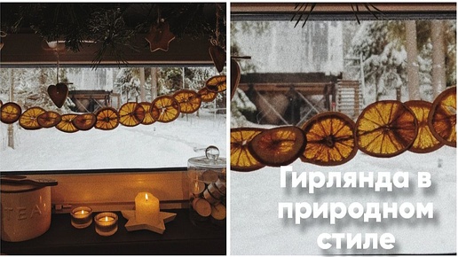 Декор своими руками. Мастерим новогоднюю гирлянду из сушёного апельсина и шишек.