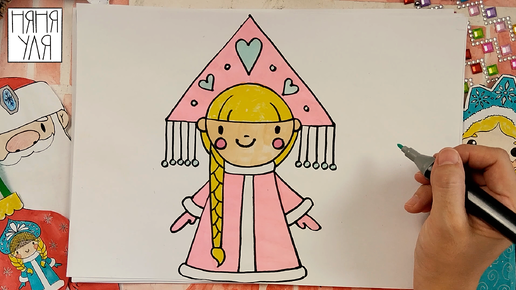 Как нарисовать Снегурочку на Новый год | няня Уля