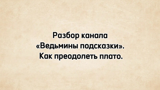Разбор канала «Ведьмины подсказки». Как преодолеть плато.