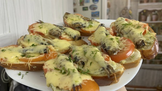 Бутерброды со шпротами в духовке. Очень простая и вкусная закуска на праздничный СТОЛ
