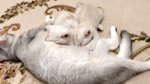Кошка Кайли кормит своих подросших котят братьев молочком 🍼🍼
