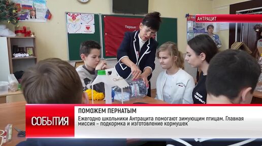ТК "Родной". Ежегодно школьники Антрацита помогают зимующим птицам. Главная миссия – подкормка и изготовление кормушек