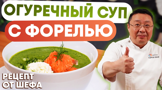 Рецепт огуречного суп с запечённой форелью и сыром страчателла