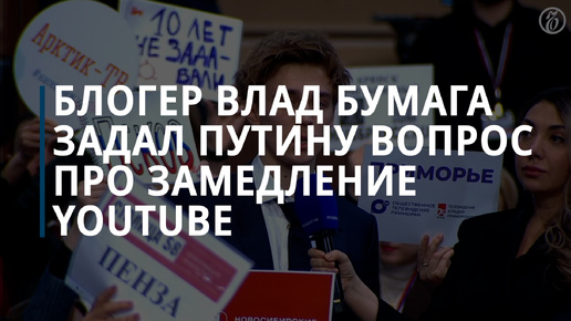 Блогер Влад Бумага задал вопрос Владимиру Путину по поводу замедления YouTube