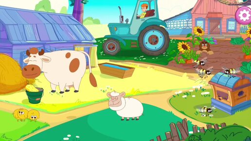 Играем в Простоквашино. Поливаем цветочки, строим улей и моем трактор.