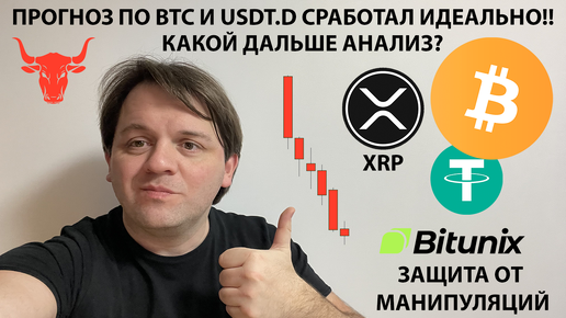 🚨ПРОГНОЗ ПО BTC СРАБОТАЛ! ДОКАЗЫВАЮ! USDT.D ЮВЕЛИРНО ОТРАБОТАЛА! ТЕХ АНАЛИЗ #BTC #USDT #XRP