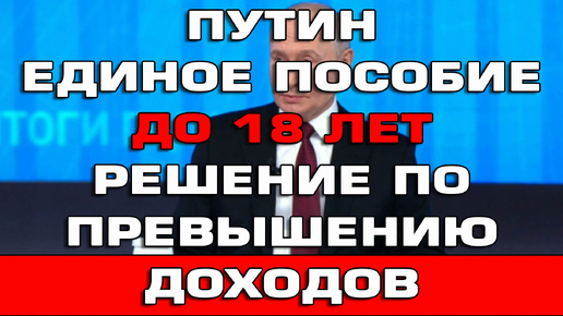 Путин Единое пособие до 18 лет Решение по превышению доходов Новости