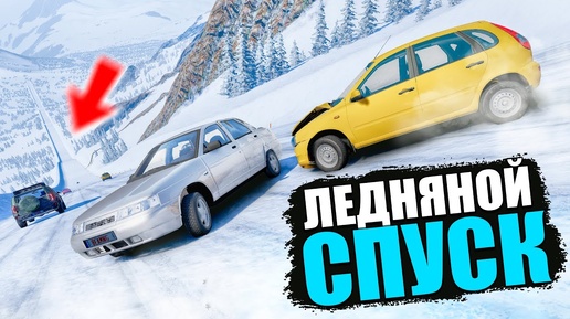 BEAMNG DRIVE ЛЕДЯНОЙ СПУСК С ГОРЫ БЕЗ ТОРМОЗОВ НА ЧИТ ТАЧКАХ В BEAM NG DRIVE