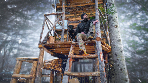 ТЕПЛЫЙ ДОМ НА ДЕРЕВЕ в ЗИМНЕМ ЛЕСУ - ЛЕСНОЕ УКРЫТИЕ для НОЧЛЕГА | СТРОЮ и УЛУЧШАЮ